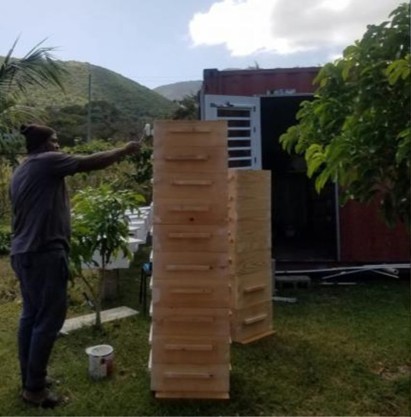 Hive box-building is a skill that specifically attracted Abrian ‘Snagga’ Stevens to the Co-op. In the past, both the price and the process of importing hive boxes to our tiny island was prohibitive. Consequently, hives were built using local lumber. Snagga – a certified joiner – found a renewed sense of satisfaction of building homes for bees and not just for humans!